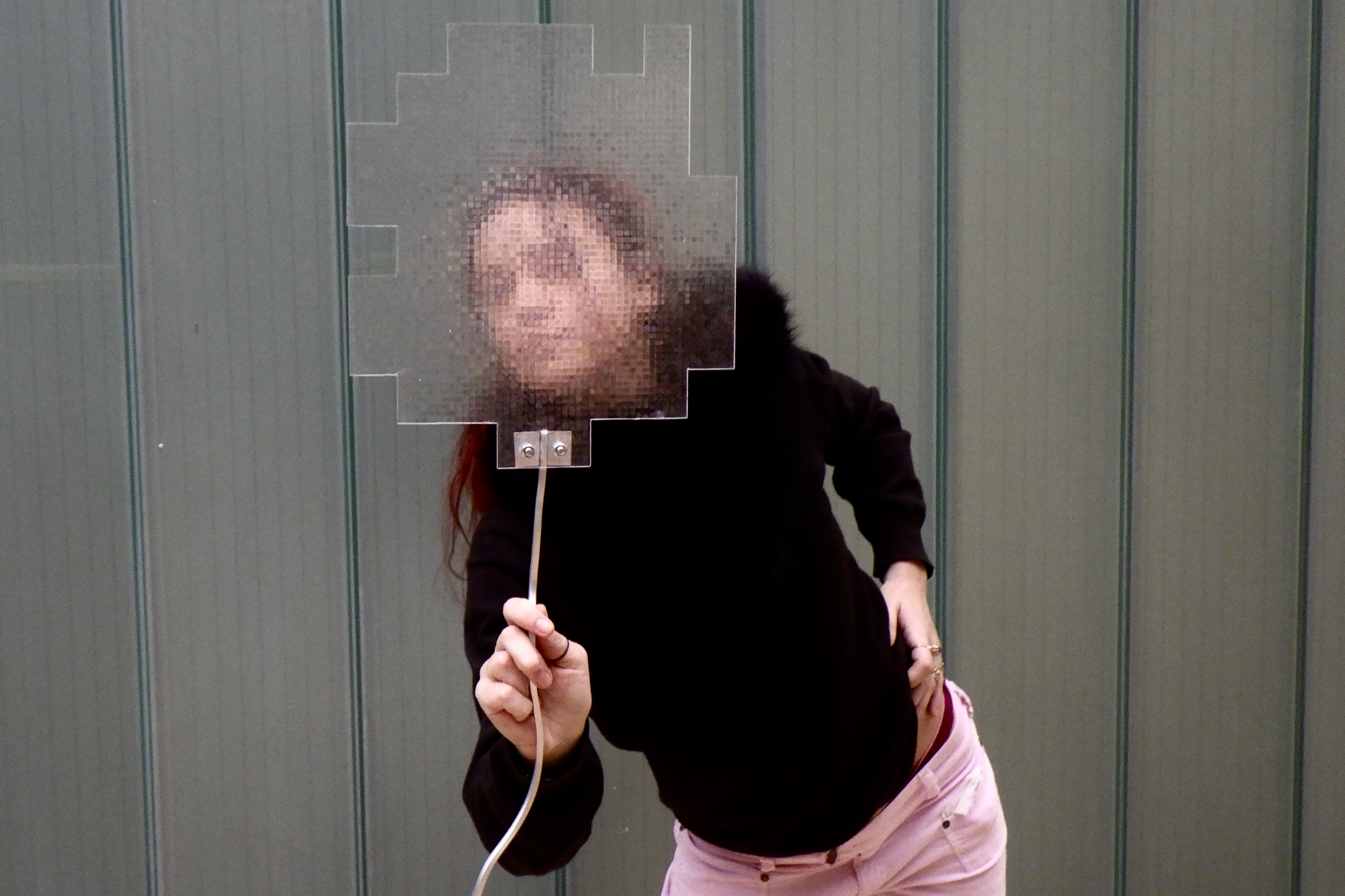Echoing the digital practice of pixelating faces for censorship, this work places the pixelator in reality as a spatially confining utilitarian object, prompting contemplation on the constraints woven into the fabric of anonymity in the age of surveillance. Is freedom of movement and anonymity now mutually exclusive?